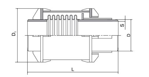 Ключевой элемент узла – подвижный цилиндрический гофр из высоколегированной тонколистовой нержавеющей стали. Присоединительная арматура изготавливается в форме трубных фланцев или патрубков под приварку. Есть система ограничителей, блокирующих изменения в положении гофра в ответ на поперечные смещения труб.